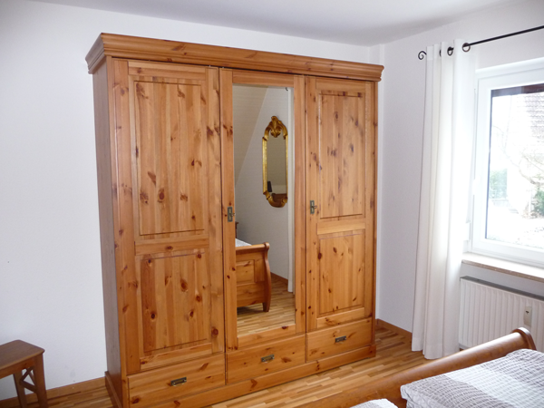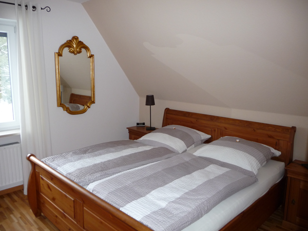 Hell und freundlich eingerichtet im modernen Landhaus-Stil verfügt sie über ein Schlafzimmer mit Doppelbett.