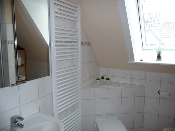 Das Bad verfügt über eine Dusche und WC.