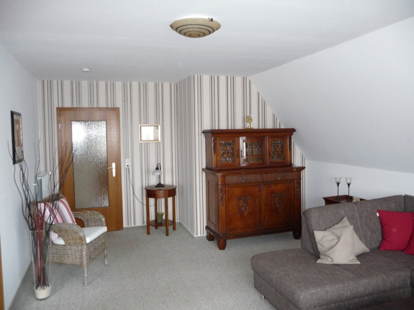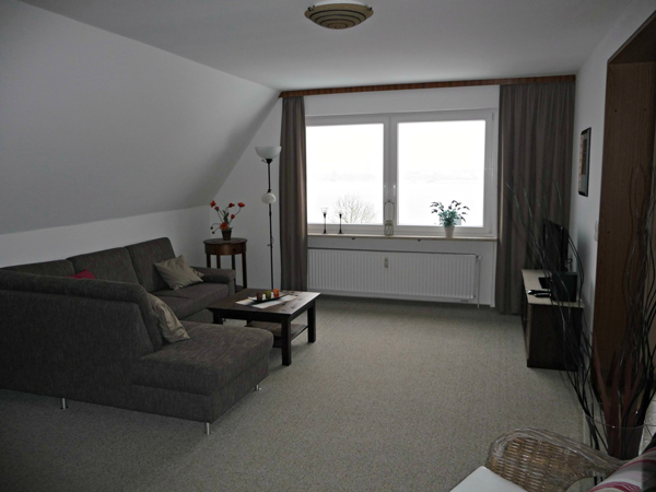 Das Wohnzimmer ist modern, aber behaglich eingerichtet.