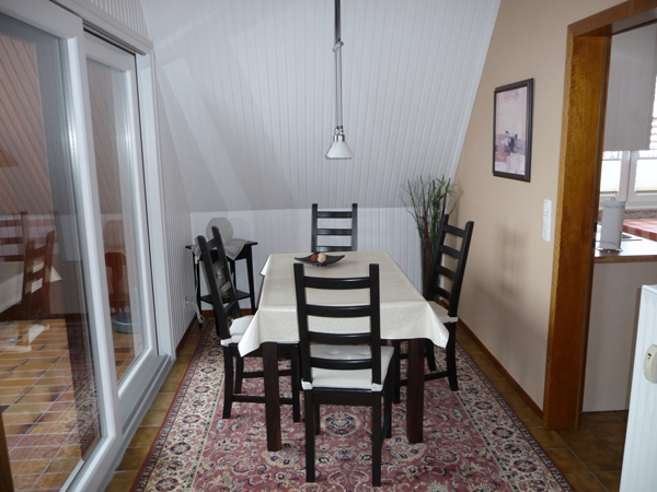 Im Esszimmer befindet sich ein überdachter Balkon, von dem aus Sie den herrlichen Blick auf den Plöner See genießen können.